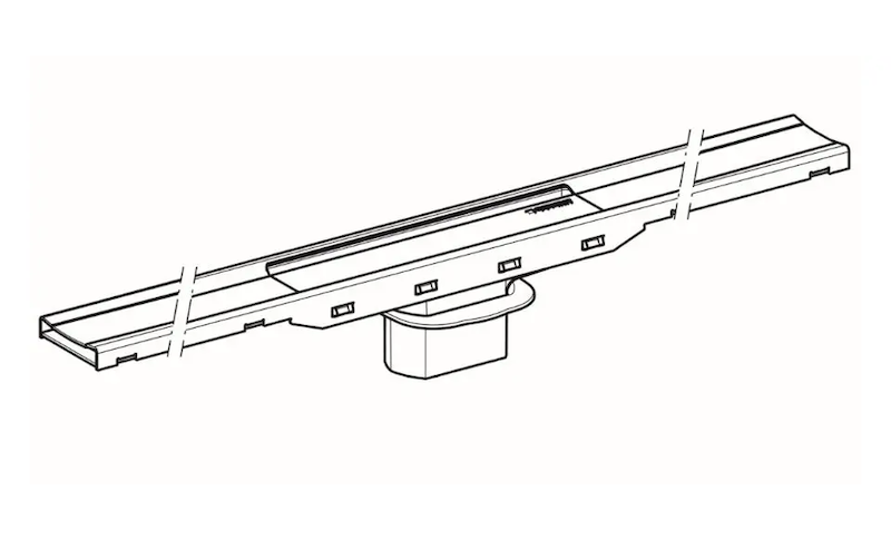 - Sprchový kanálek nastavitelný výškově, sklonem i vyosením
