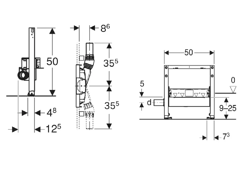 Geberit Duofix - Předstěnová instalace pro sprchu, výška 50 cm, s odtokem ve stěně, pro výšku mazaniny u vtoku 90-200 mm 111.591.00.2