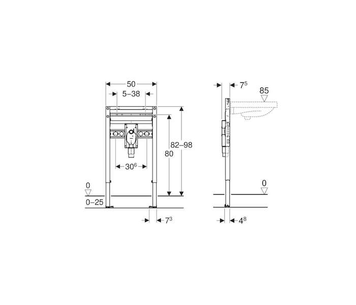 Geberit Duofix - Předstěnová instalace pro umyvadlo, pro stojánkovou armaturu, stavební výška 82-98 cm 111.489.00.2