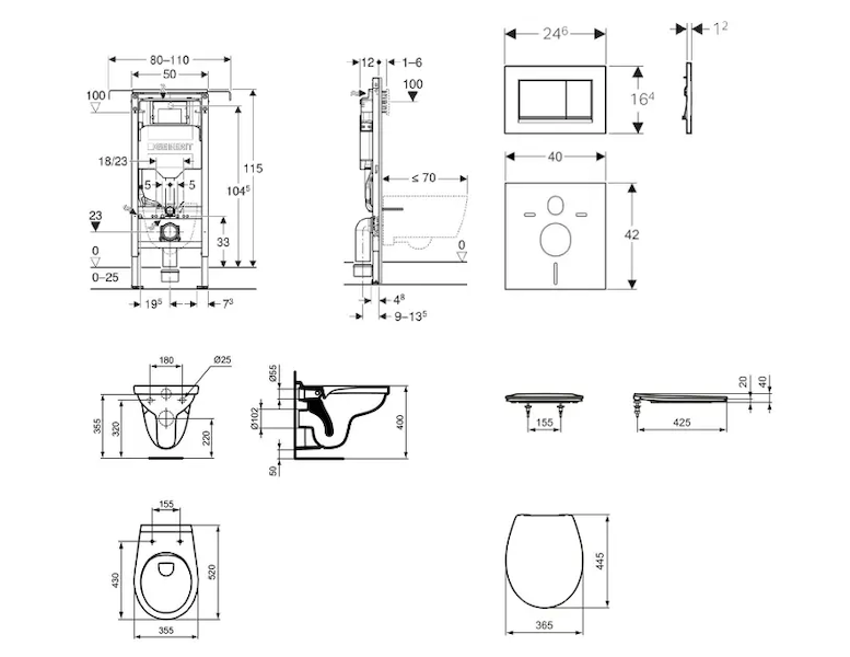 - Rám pro závěsná WC s připojovacími rozměry dle EN 33 a vyložením až 70 cm
