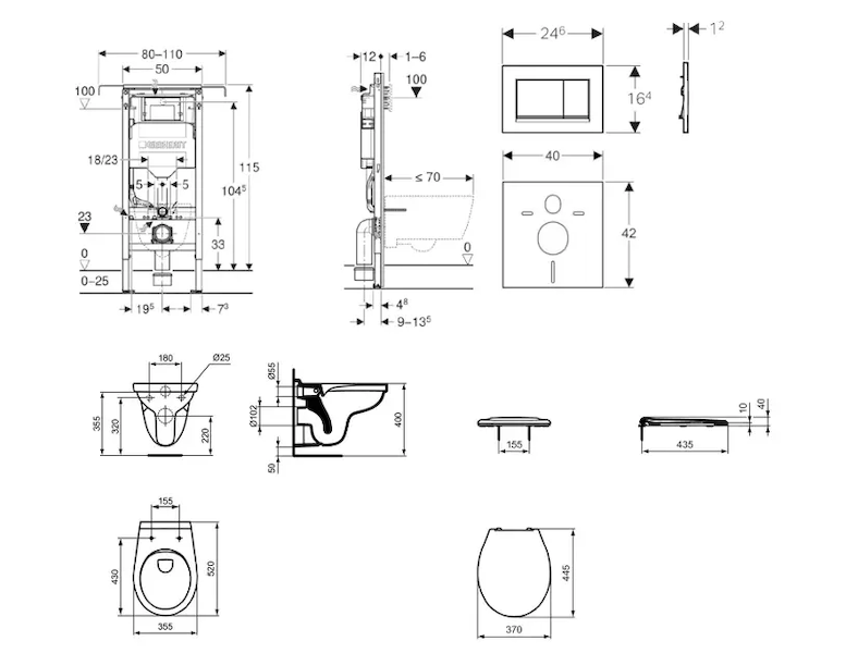 - Rám pro závěsná WC s připojovacími rozměry dle EN 33 a vyložením až 70 cm