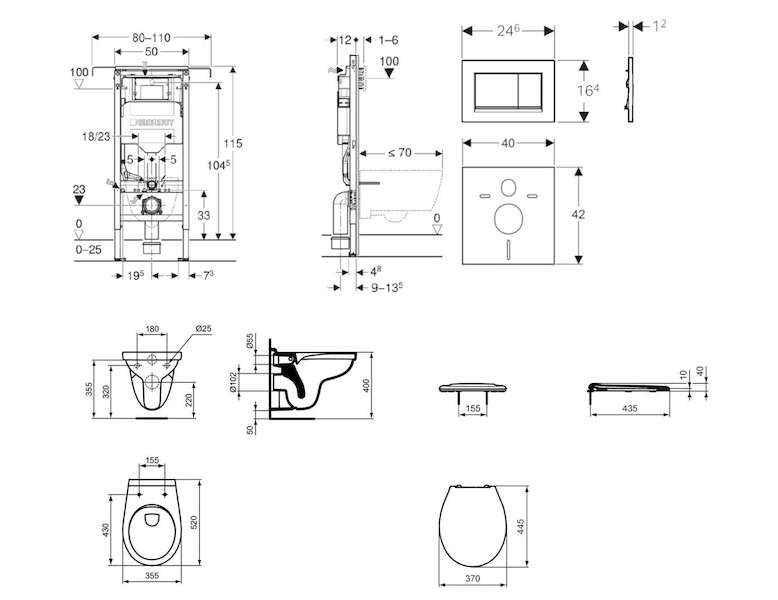 - Rám pro závěsná WC s připojovacími rozměry dle EN 33 a vyložením až 70 cm