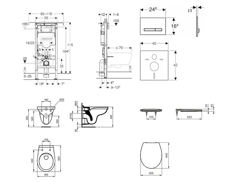 - Rám pro závěsná WC s připojovacími rozměry dle EN 33 a vyložením až 70 cm