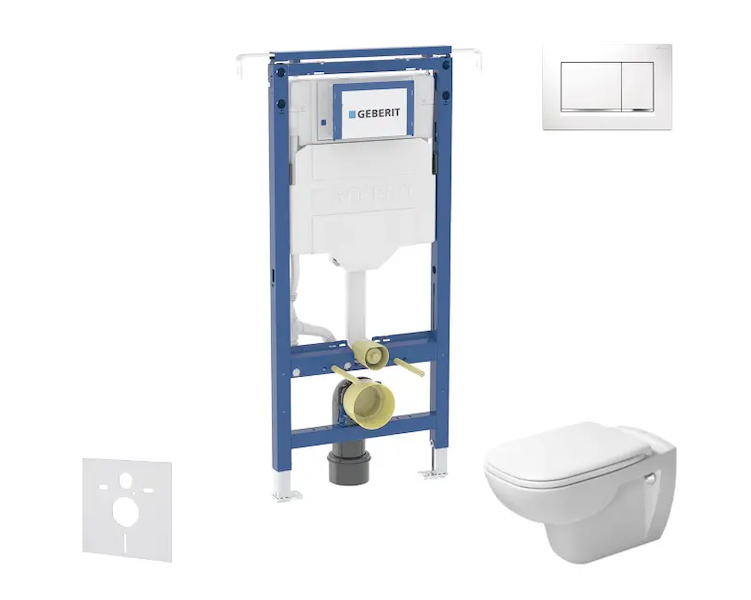 Geberit Duofix - Set předstěnové instalace, klozetu a sedátka Duravit D-Code, tlačítka Sigma20, Rimless, SoftClose, bílá/lesklý chrom SANI11CP3105