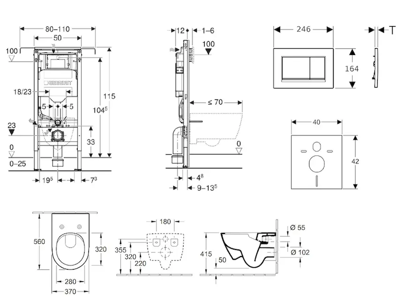 - Rám pro závěsná WC s připojovacími rozměry dle EN 33 a vyložením až 70 cm