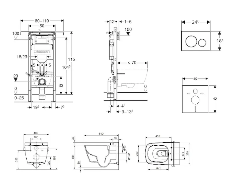 - Rám pro závěsná WC s připojovacími rozměry dle EN 33 a vyložením až 70 cm