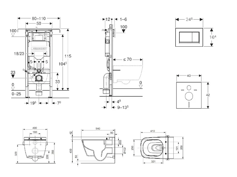 - Rám pro závěsná WC s připojovacími rozměry dle EN 33 a vyložením až 70 cm