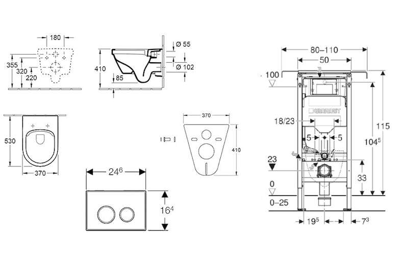 - Rám pro závěsná WC s připojovacími rozměry dle EN 33 a vyložením až 70 cm