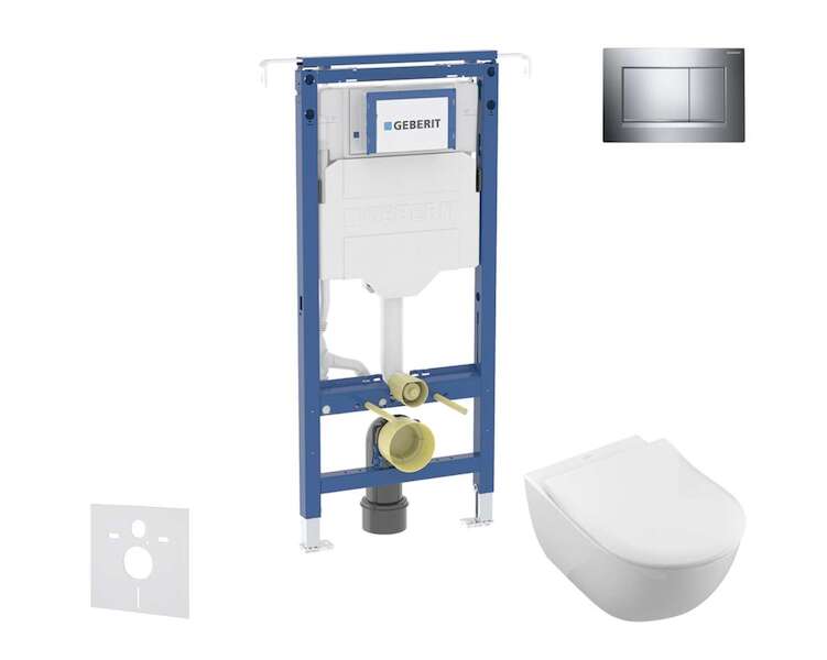 Geberit Duofix - Set předstěnové instalace, klozetu a sedátka Villeroy Boch, tlačítka Sigma30, DirectFlush, SoftClose, CeramicPlus, lesklý chrom/chrom mat SANI11CK1102