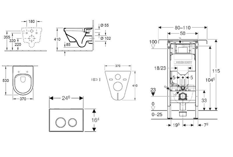 - Rám pro závěsná WC s připojovacími rozměry dle EN 33 a vyložením až 70 cm