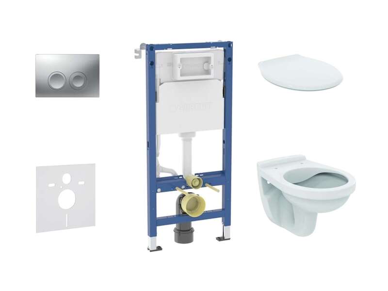 Set předstěnové instalace, klozetu a sedátka Ideal Standard, tlačítka Delta21, matný chrom
