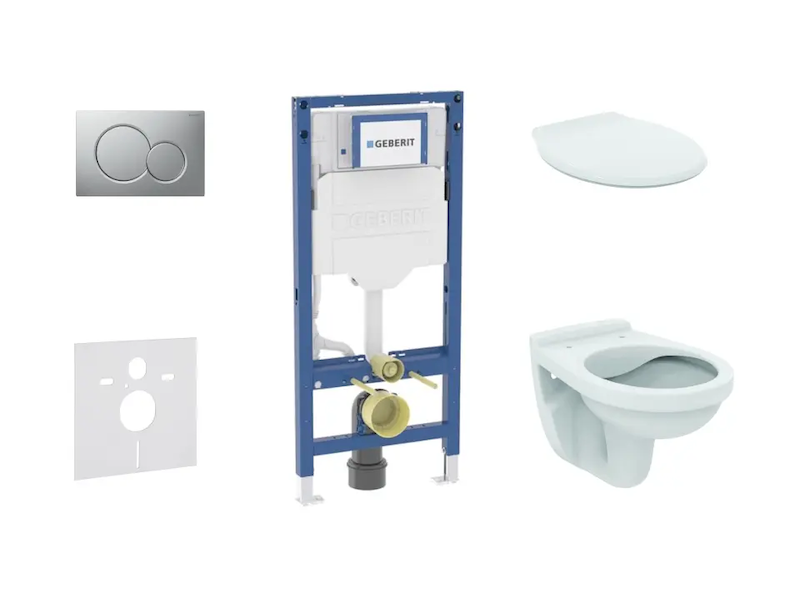 Geberit Duofix - Set předstěnové instalace, klozetu Alpha a sedátka, tlačítko Sigma01, matný chrom SANI11CD2126