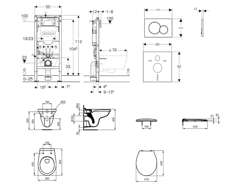 - pro závěsná WC s připojovacími rozměry podle EN 33 a přesahem do 70 cm