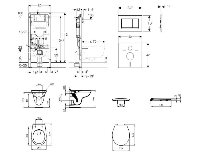 - pro závěsná WC s připojovacími rozměry podle EN 33 a přesahem do 70 cm