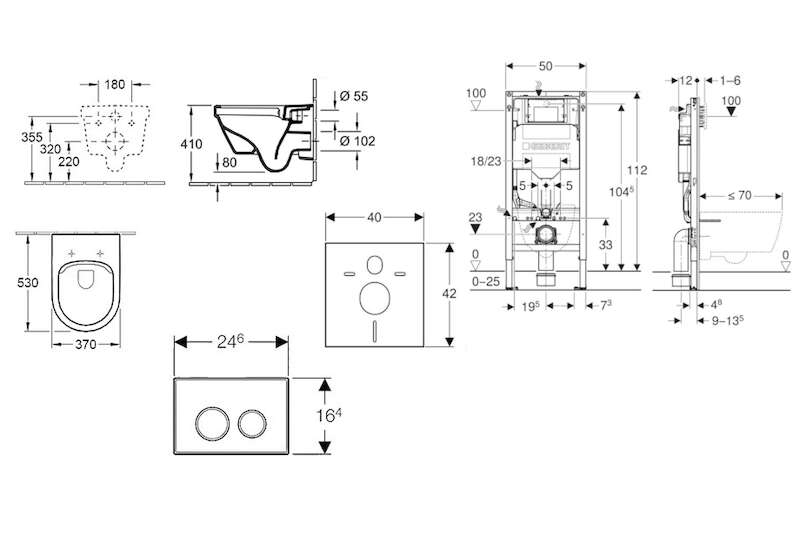 - pro závěsná WC s připojovacími rozměry podle EN 33 a přesahem do 70 cm