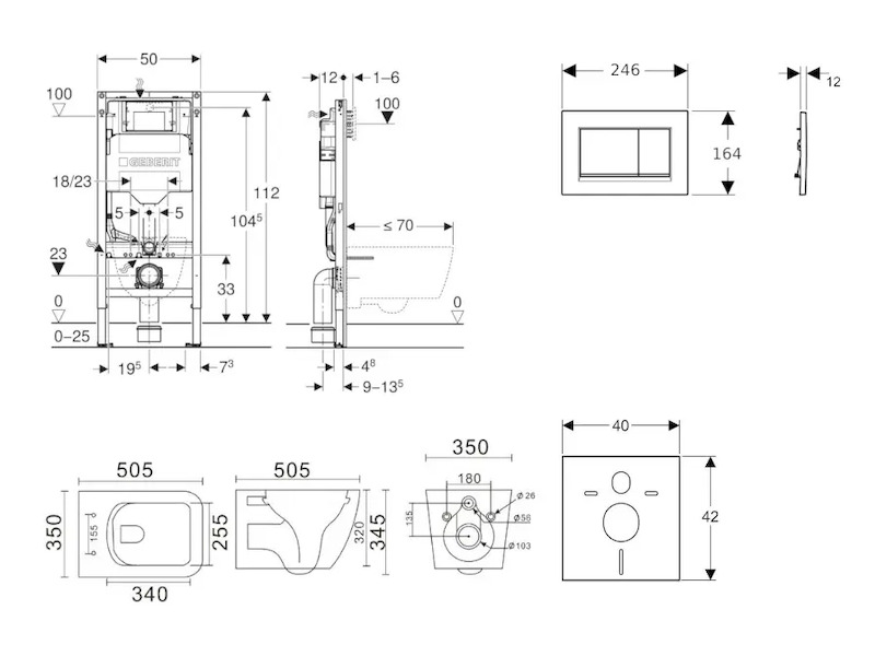 - vybaven trubkovou chráničkou pro přívodní potrubí k připojení sprchovacích WC Geberit AquaClean