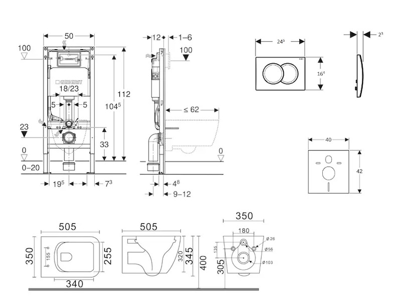 - vybaven trubkovou chráničkou pro přívodní potrubí k připojení sprchovacích WC Geberit AquaClean