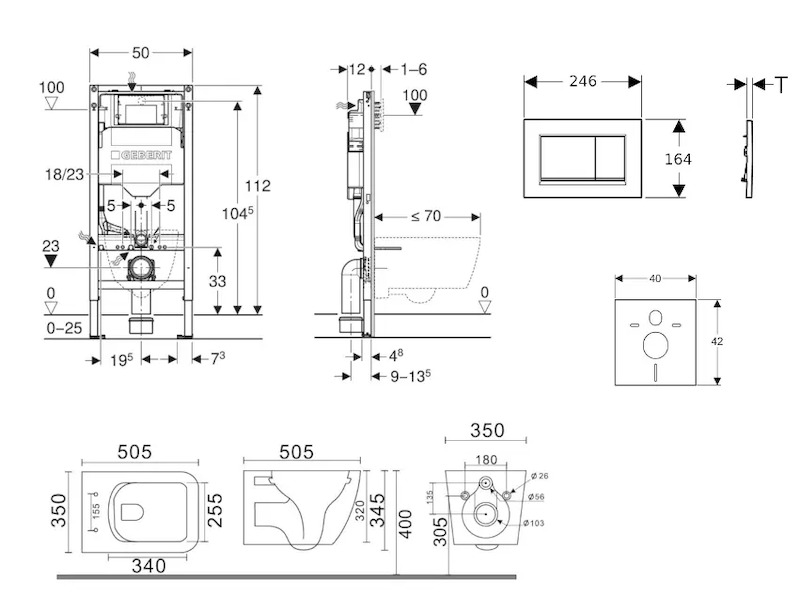 - pro závěsná WC s připojovacími rozměry podle EN 33 a přesahem do 70 cm