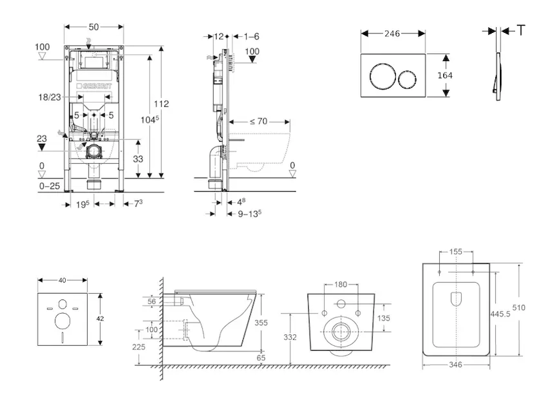 - k montáži do systémových stěn Geberit Duofix částečně vysokých nebo vysokých na výšku místnosti