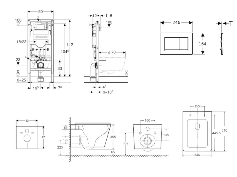 - k montáži do systémových stěn Geberit Duofix částečně vysokých nebo vysokých na výšku místnosti