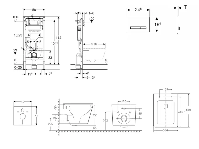 - k montáži do systémových stěn Geberit Duofix částečně vysokých nebo vysokých na výšku místnosti