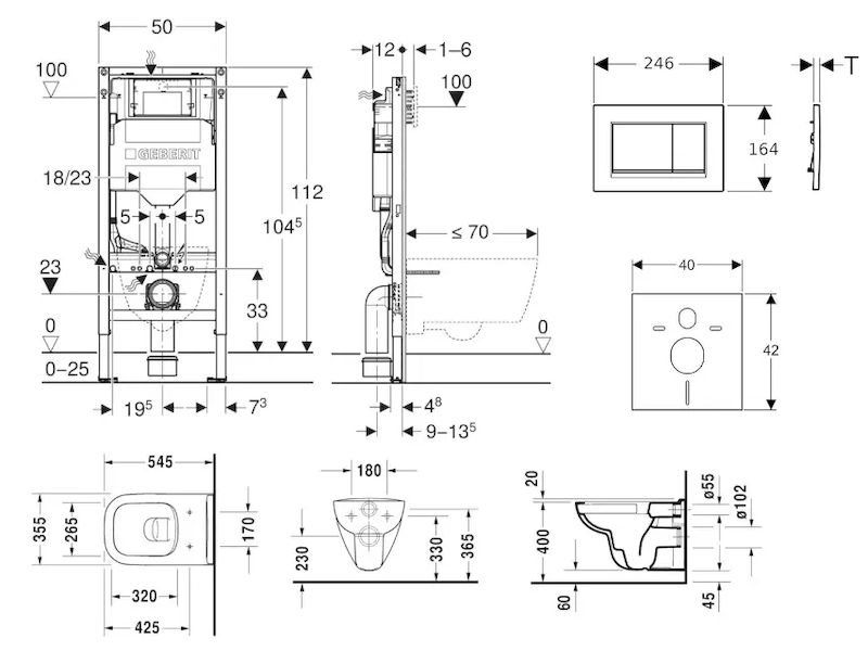 - vybaven trubkovou chráničkou pro přívodní potrubí k připojení sprchovacích WC Geberit AquaClean