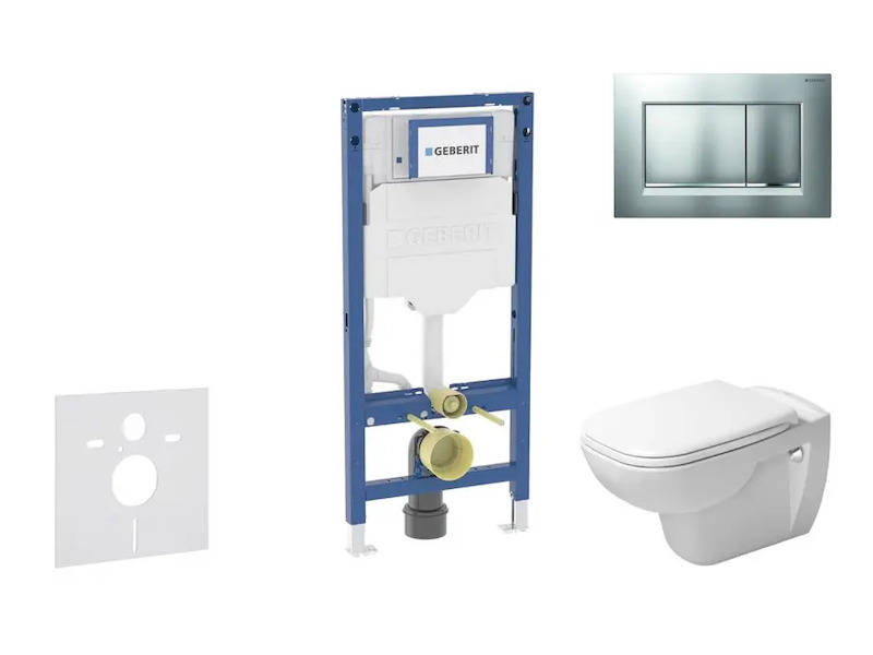 Geberit Duofix - Set předstěnové instalace, klozetu D-Code a sedátka softclose, tlačítko Sigma20, matný chrom/chrom SANI11CP2106