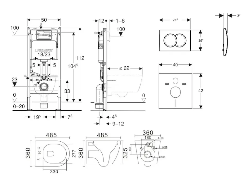 - vybaven trubkovou chráničkou pro přívodní potrubí k připojení sprchovacích WC Geberit AquaClean