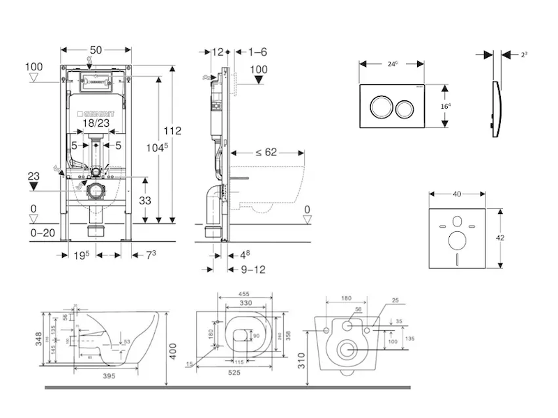 - rám pro nástěnné WC s připojovacími rozměry dle EN 33 a přesahem do 62 cm