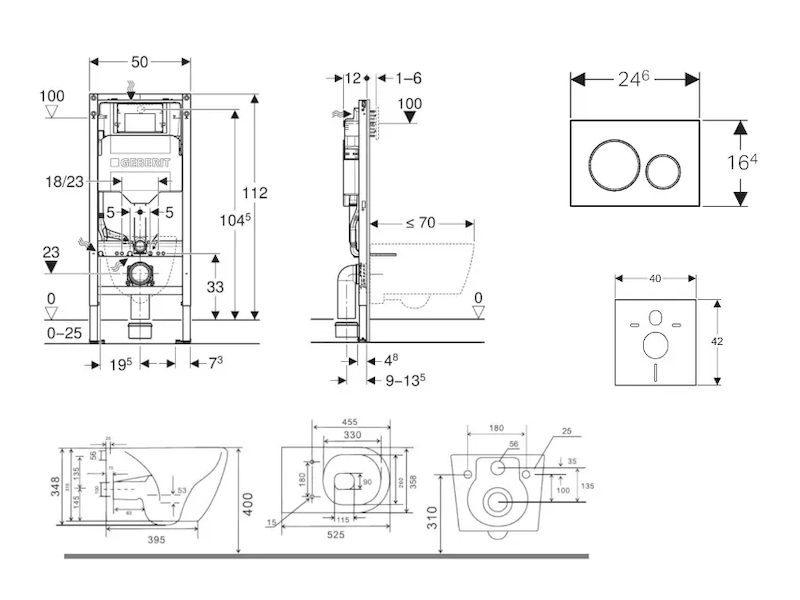 - vybaven trubkovou chráničkou pro přívodní potrubí k připojení sprchovacích WC Geberit AquaClean