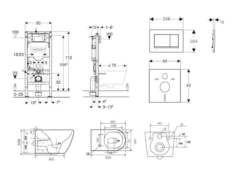 - k montáži do systémových stěn Geberit Duofix částečně vysokých nebo vysokých na výšku místnosti