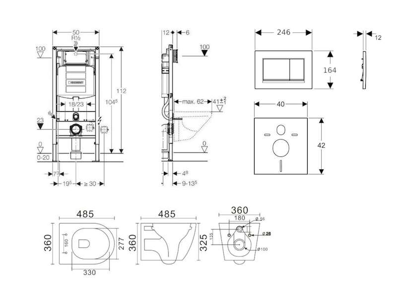 - vybaveno trubkovou chráničkou pro přívodní potrubí k připojení sprchovacích WC Geberit AquaClean