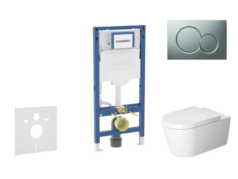 Geberit Duofix - Set předstěnové instalace, klozetu ME by Starck a sedátka softclose, tlačítko Sigma01, matný chrom SANI11CP2110