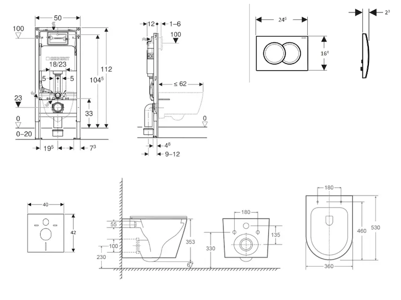 - vybaven trubkovou chráničkou pro přívodní potrubí k připojení sprchovacích WC Geberit AquaClean