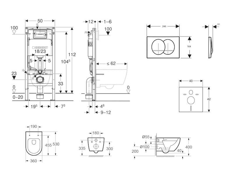 - vybaven trubkovou chráničkou pro přívodní potrubí k připojení sprchovacích WC Geberit AquaClean