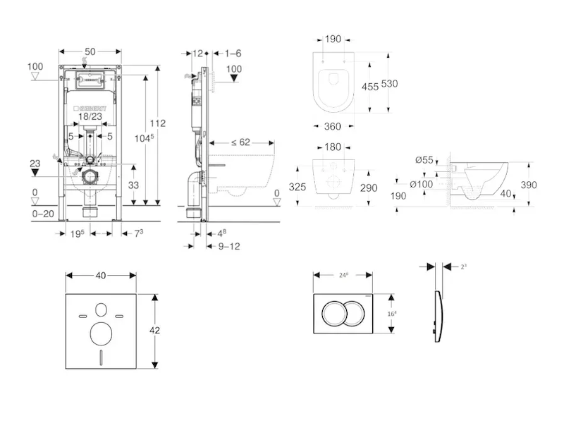 - rám pro nástěnné WC s připojovacími rozměry dle EN 33 a přesahem do 62 cm