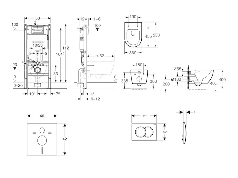 - rám pro nástěnné WC s připojovacími rozměry dle EN 33 a přesahem do 62 cm