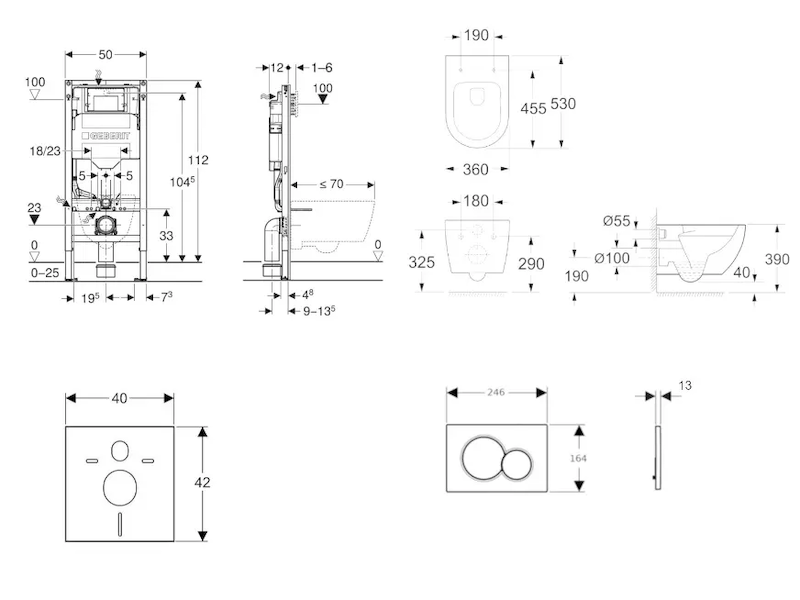 - k montáži do systémových stěn Geberit Duofix částečně vysokých nebo vysokých na výšku místnosti
