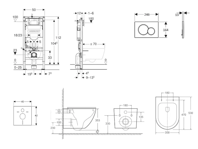 - k montáži do systémových stěn Geberit Duofix částečně vysokých nebo vysokých na výšku místnosti