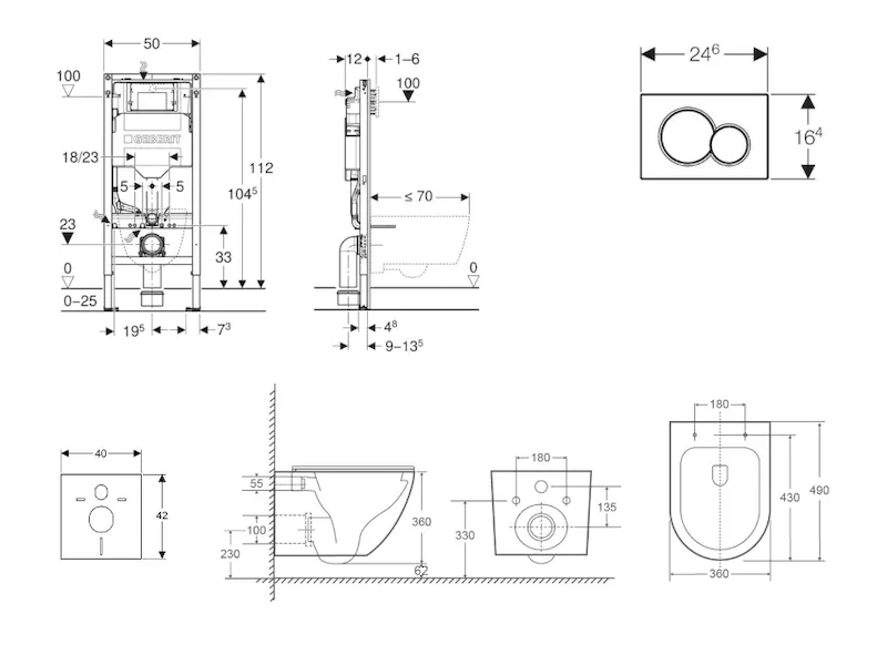 - vybaven trubkovou chráničkou pro přívodní potrubí k připojení sprchovacích WC Geberit AquaClean