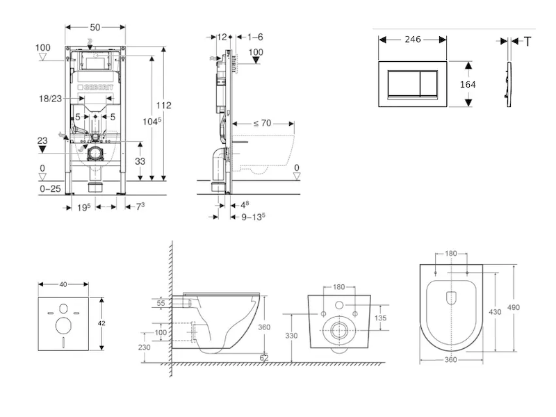 - k montáži do systémových stěn Geberit Duofix částečně vysokých nebo vysokých na výšku místnosti