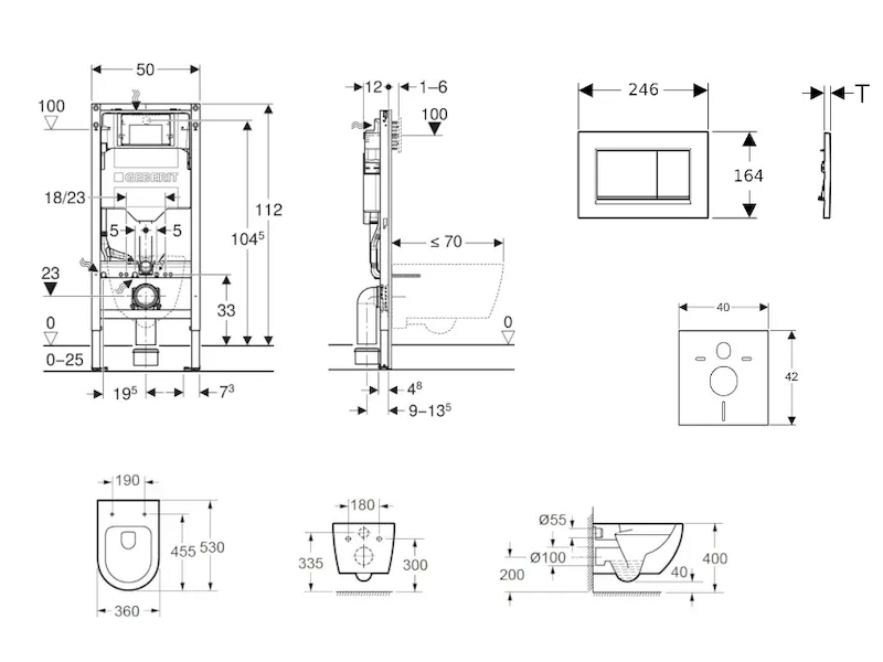 - k montáži do systémových stěn Geberit Duofix částečně vysokých nebo vysokých na výšku místnosti