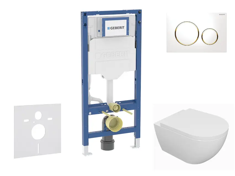 Geberit Duofix - Set předstěnové instalace, klozetu Oudee a sedátka softclose, tlačítko Sigma20, bílá/pozlacená SANI11CA3125B