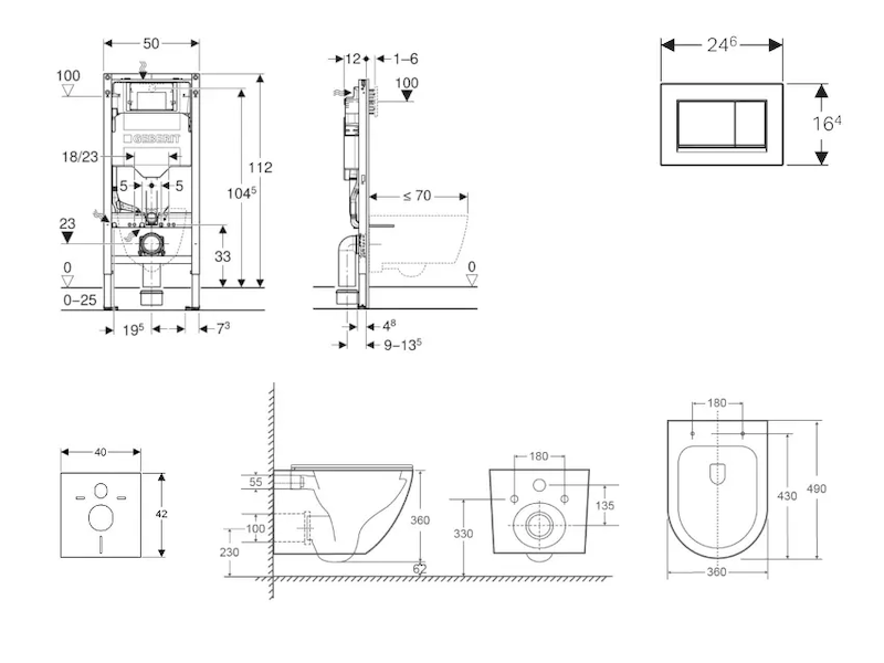 - k montáži do systémových stěn Geberit Duofix částečně vysokých nebo vysokých na výšku místnosti