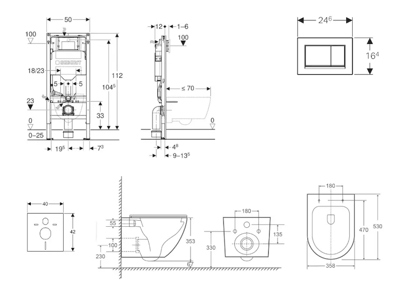 - vybaven trubkovou chráničkou pro přívodní potrubí k připojení sprchovacích WC Geberit AquaClean