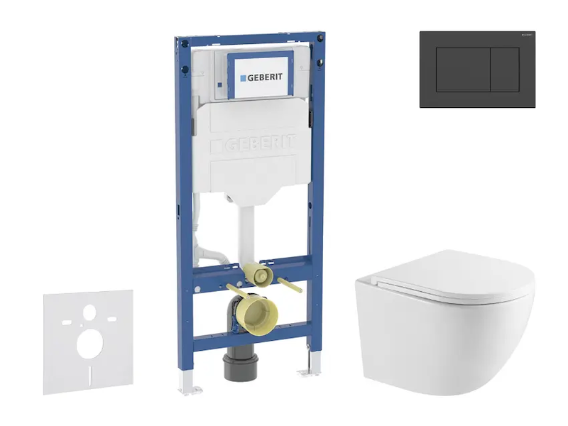 Geberit Duofix - Set předstěnové instalace, klozetu Oudee a sedátka softclose, tlačítko Sigma20, matná černá/černá SANI11CA5156