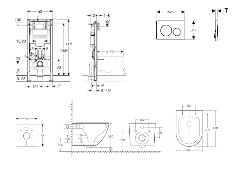 - k montáži do systémových stěn Geberit Duofix částečně vysokých nebo vysokých na výšku místnosti