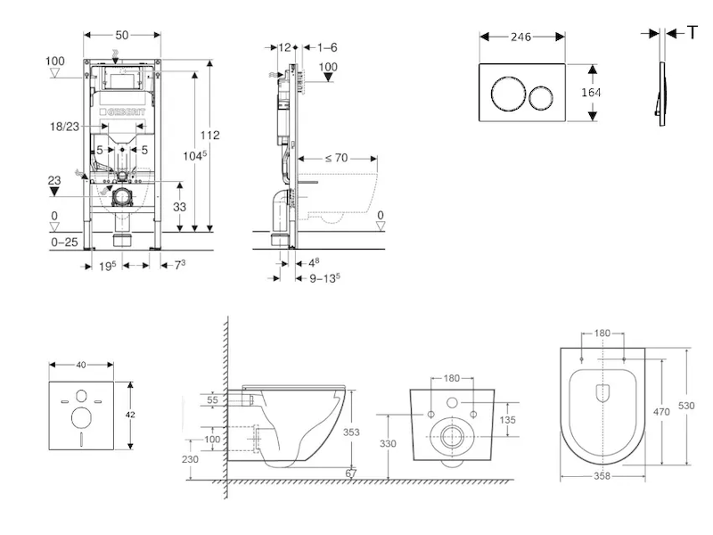 - k montáži do systémových stěn Geberit Duofix částečně vysokých nebo vysokých na výšku místnosti