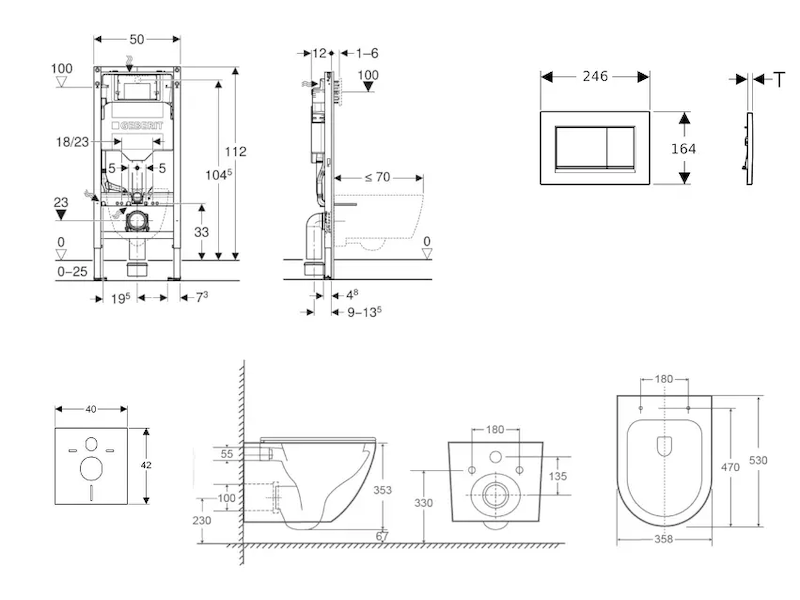 - vybaven trubkovou chráničkou pro přívodní potrubí k připojení sprchovacích WC Geberit AquaClean