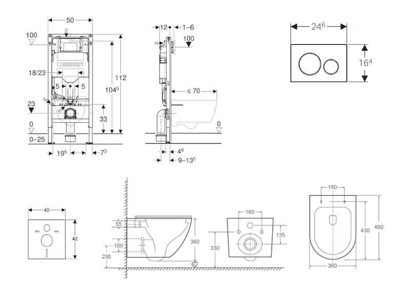 - k montáži do systémových stěn Geberit Duofix částečně vysokých nebo vysokých na výšku místnosti